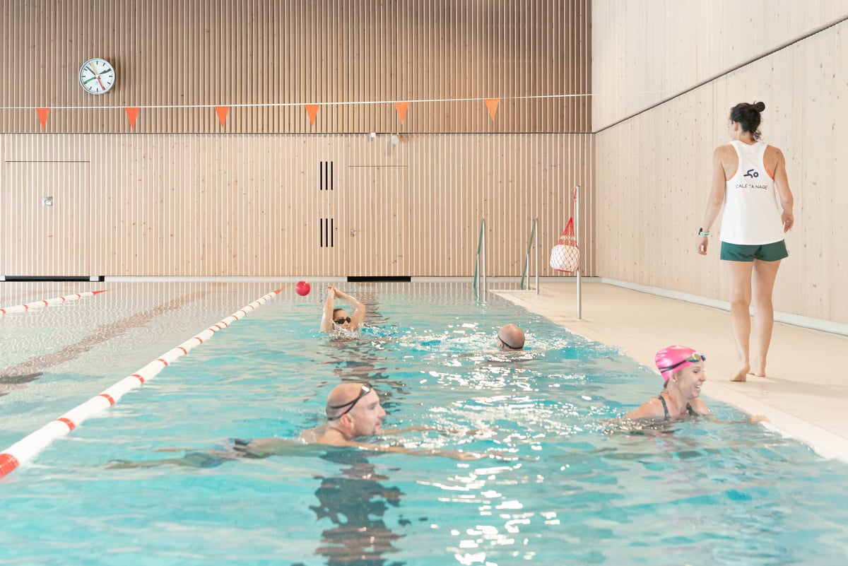 Cale ta nage s’adresse aux adultes qui désirent débuter la natation, peu importe leur forme physique et leur niveau. Les prérequis sont: